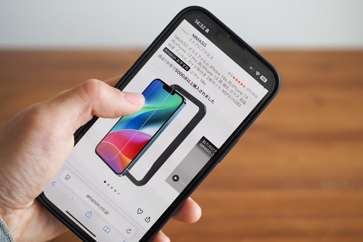 手帳型のケースではないので、画面はニマソの強化ガラスを貼りました。